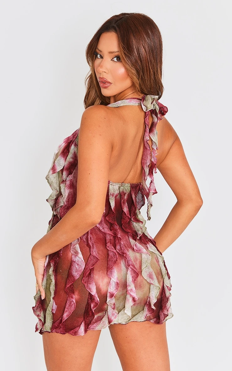 Be the first to review “Prettylittlething Green Printed Textured Knit Ruffle Halterneck Bodycon Dress Green” Cancel reply