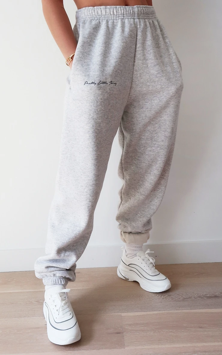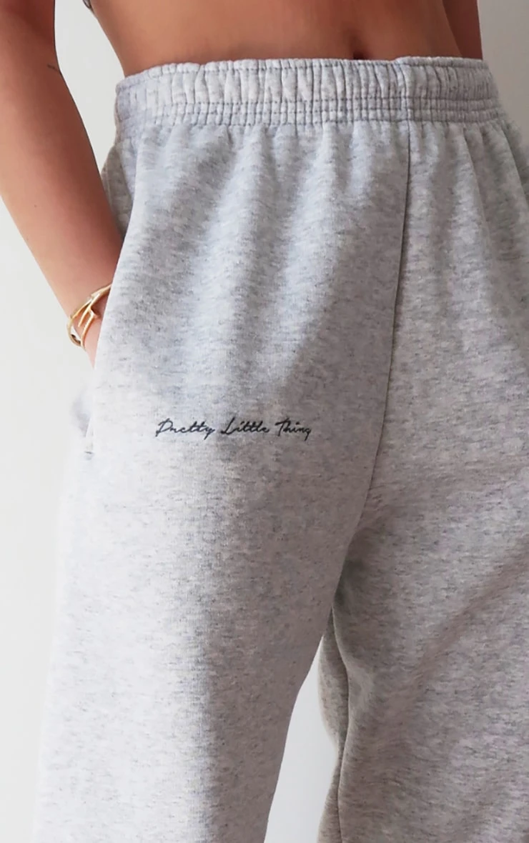 Keep it casual but chic with these graphic style sweatpants. Featuring a grey materialwith an elasticated waistband and an embroidered ‘PrettyLittleThing’ graphic, style with a sweatshirt for a laid back look we are loving.