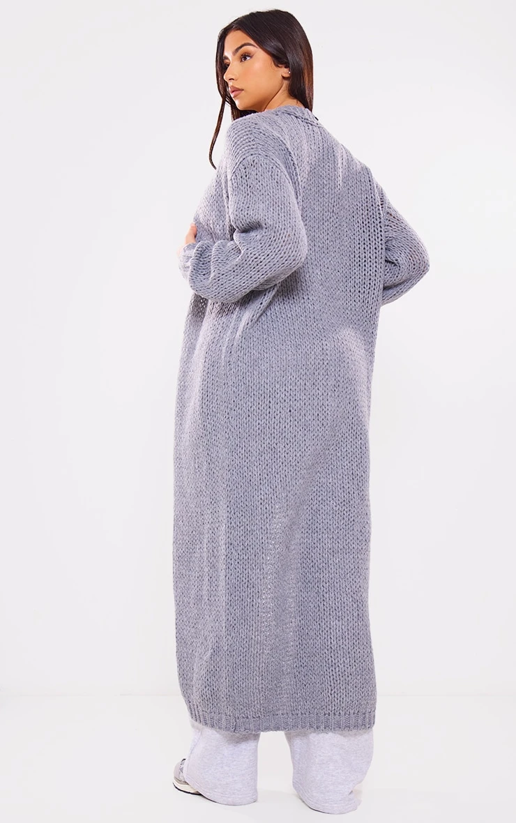 Why not switch up your off-duty style game this season with this grey extreme chunky knitted slouchy maxi cardigan? Perfect for those chilled days at home, this cardigan is sure to turn heads for all the right reasons. With a grey extreme chunky knitted material and a maxi length, what’s not to love? Simply layer over a comfy ‘fit and chunky kicks for a ready-to-go finish.