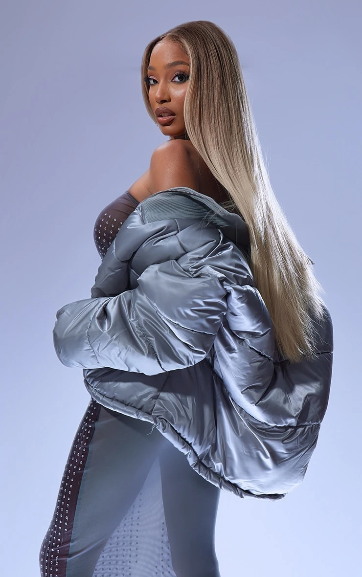 Your new season wardrobe is calling out for this light grey ribbed collar detail high shine shell puffer jacket. brought to you in a light grey high shine material with a collar detail, what’s not to love? Its shell puffer design is all you need to elevate any look. Team this ribbed puffer jacket with your outfit of the day to finish off the look we are obsessing over.