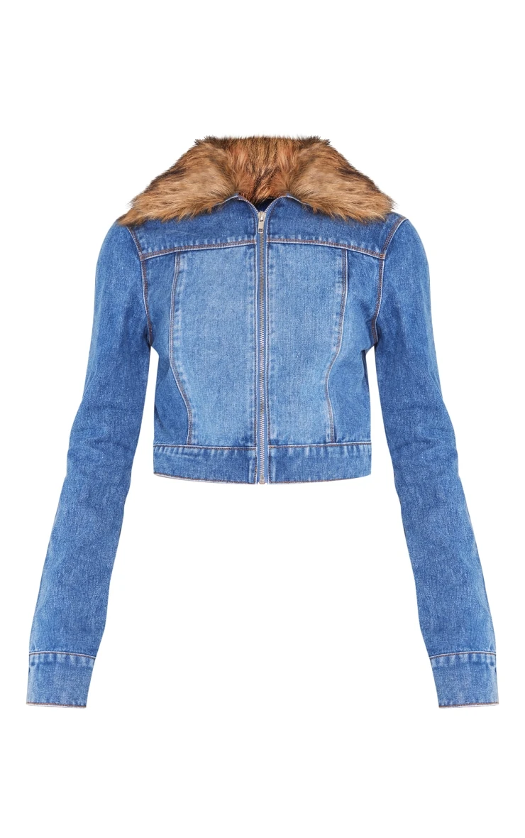 Be the first to review “Prettylittlething Mid Blue Wash Fur Trim Denim Biker Jacket Mid Blue Wash” Cancel reply