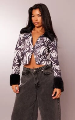 Be the first to review “Prettylittlething Monochrome Swirl Print Faux Fur Zip Up Knit Cardigan Monochrome” Cancel reply