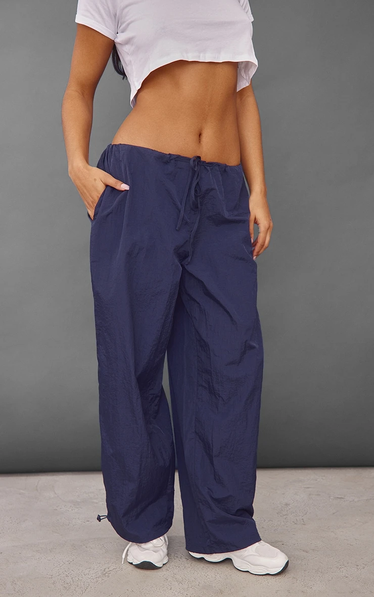 Add some of this season’s must-have hue to your wardrobe with these cargo bottoms. Featuring a navy blue lightweight material with a toggle detail and a relaxed fit. Keep it casual with a simple crop top and chunky kicks.