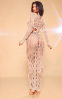 Prettylittlething Midnight Blue Open Back Contrast Bralet Knit Midaxi Dress Midnight Blue