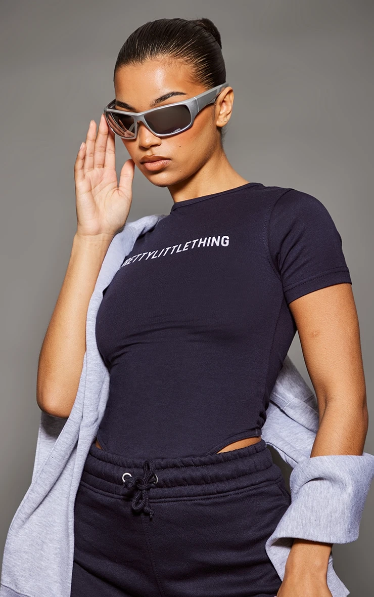 Take your look of the day to a whole new level with this PrettyLittleThing navy logo short sleeved bodysuit. Brought to you in a navy material with a ‘PrettyLittleThing’ print, a figure-hugging fit and short sleeves, what’s not to love? Pair this navy bodysuit with the matching bottoms, box-fresh kicks and accessories to complete the perfect off-duty look.