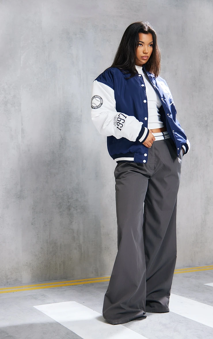 Give your everyday look an edge with this navy ny graphic bomber jacket. This unreal jacket will have heads turning wherever you go. In a navy hue and a ‘NY’ graphic, this jacket will earn you some major styling points this season. In a bomber style, this jacket is perfect for pairing with your off-duty outfits. Style with some wide leg pants and a white top to take your look to the next level.