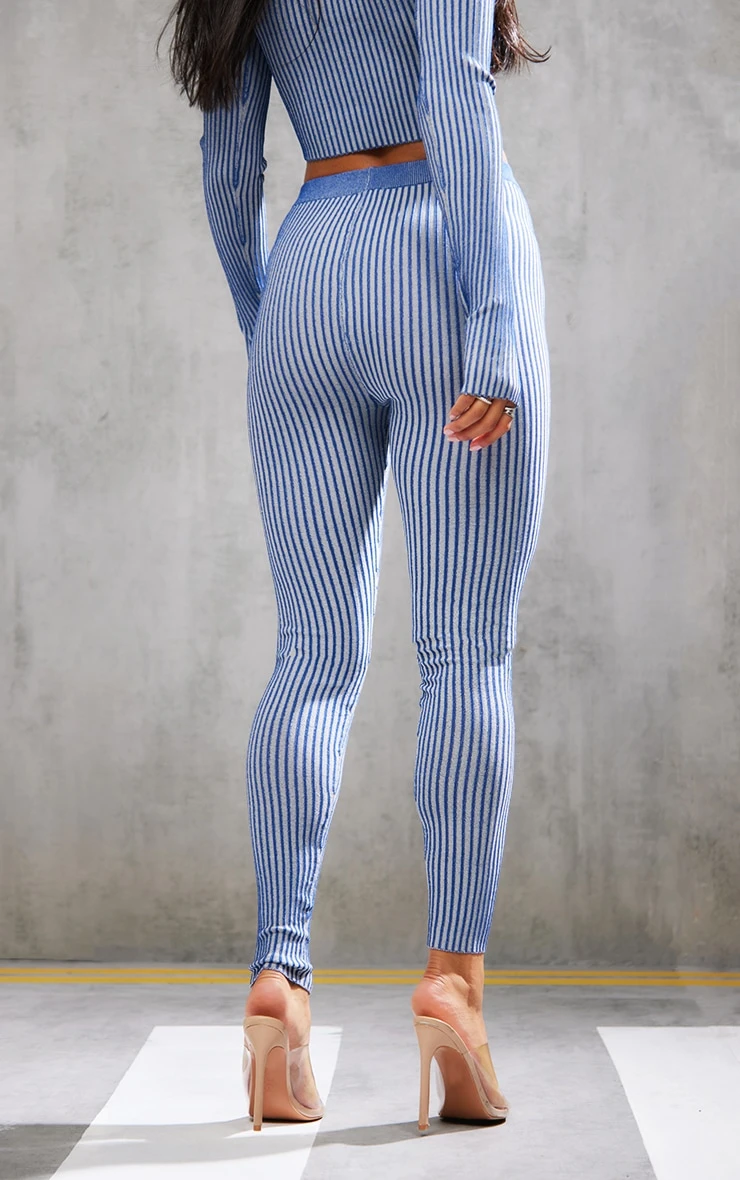 Add some cosy feels to your weekend wardrobe with these navy two-tone knit high-waist leggings. These leggings are made from a navy two-tone