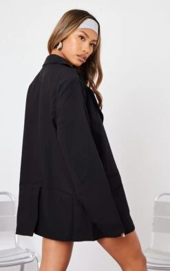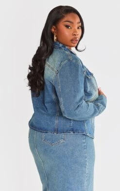 PRETTYLITTLETHING Mid Blue Wash Oversized Boyfriend Pocket Detail Denim Jacket Mid Blue Wash