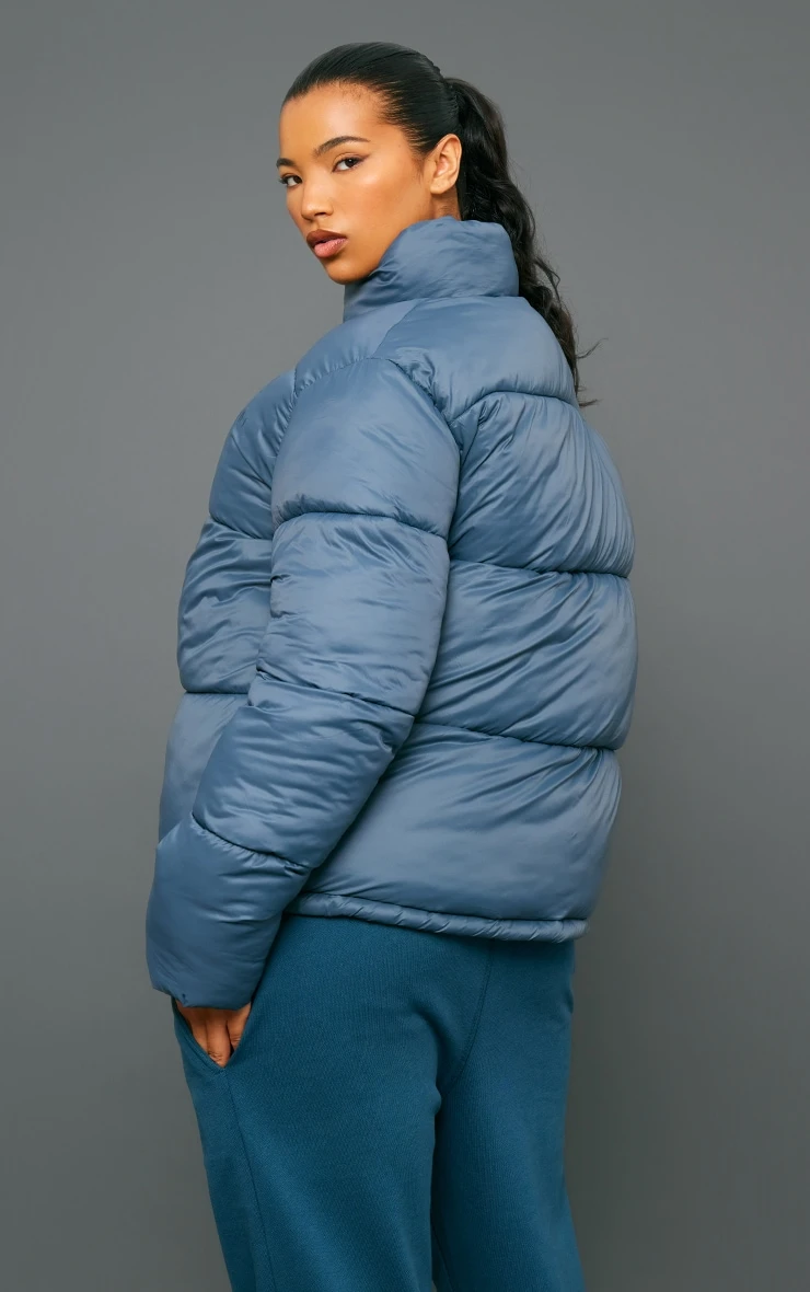 Add some statement hues into your weekend wardrobe with this petrol shell quilted cropped puffer coat. Brought to you in a petrol shell material with a quilted design adding all the edge to you outfit of the day. Its cropped length and puffer fit are perfect for those new season looks. Team with a basic tee and some comfy sneakers, it’s a yes from us.