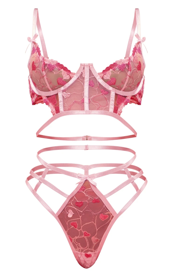 Get hearts racing with this pink embroidered longline underwired lingerie set. Brought to you in a pink material with an embroidered design adding a touch of luxe like no other. Its underwired detail and longline fit are all you need to feel effortlessly confident. Team with your go-to accessories for a fool proof finish like no other.