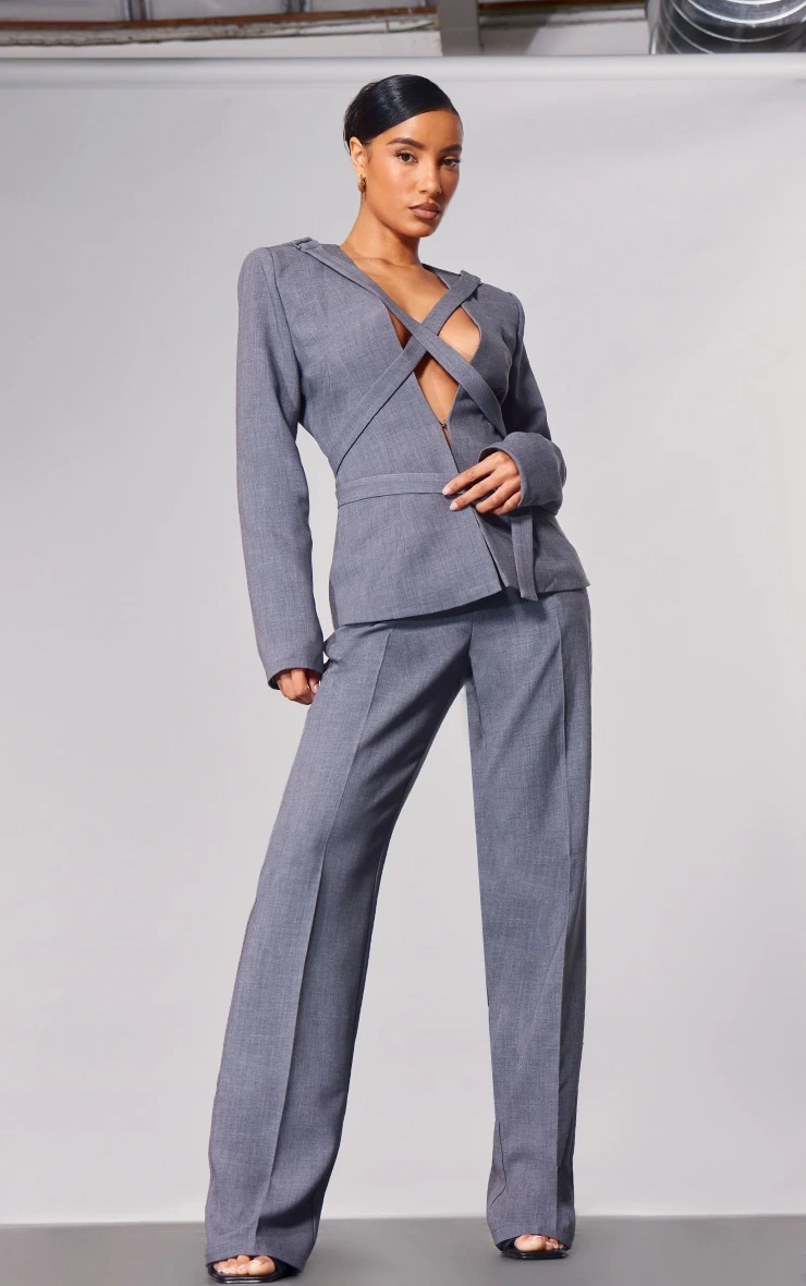 Your new season wardrobe is calling out for this PLT label charcoal strap detail cross over oversized blazer. Brought to you in a charcoal material with a strap detail and a cross of design, you won’t be able to resist doll. This blazer has an oversized fit, perfect for those important occasions you have in your diary, What are you waiting for? Shop the look and pair with the matching pants and a pair of your fave heels to finish off the look.