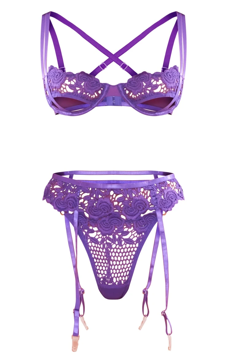 Be the first to review “Prettylittlething Purple Crochet Lace Detail Mesh 3 Piece Lingerie Set Purple” Cancel reply