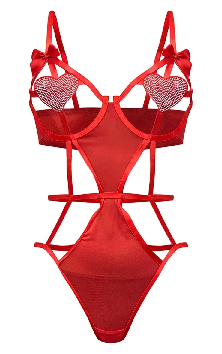 Be the ultimate show-stopper this season with this unreal red cut out heart detail bodysuit, you won’t be able to resist. This bodysuit features a red material with a cut out heart design and a figure-worshipping fit, how could you not be in love? Style this bodysuit with stockings and your fave accessories for a look we just can’t get enough of.