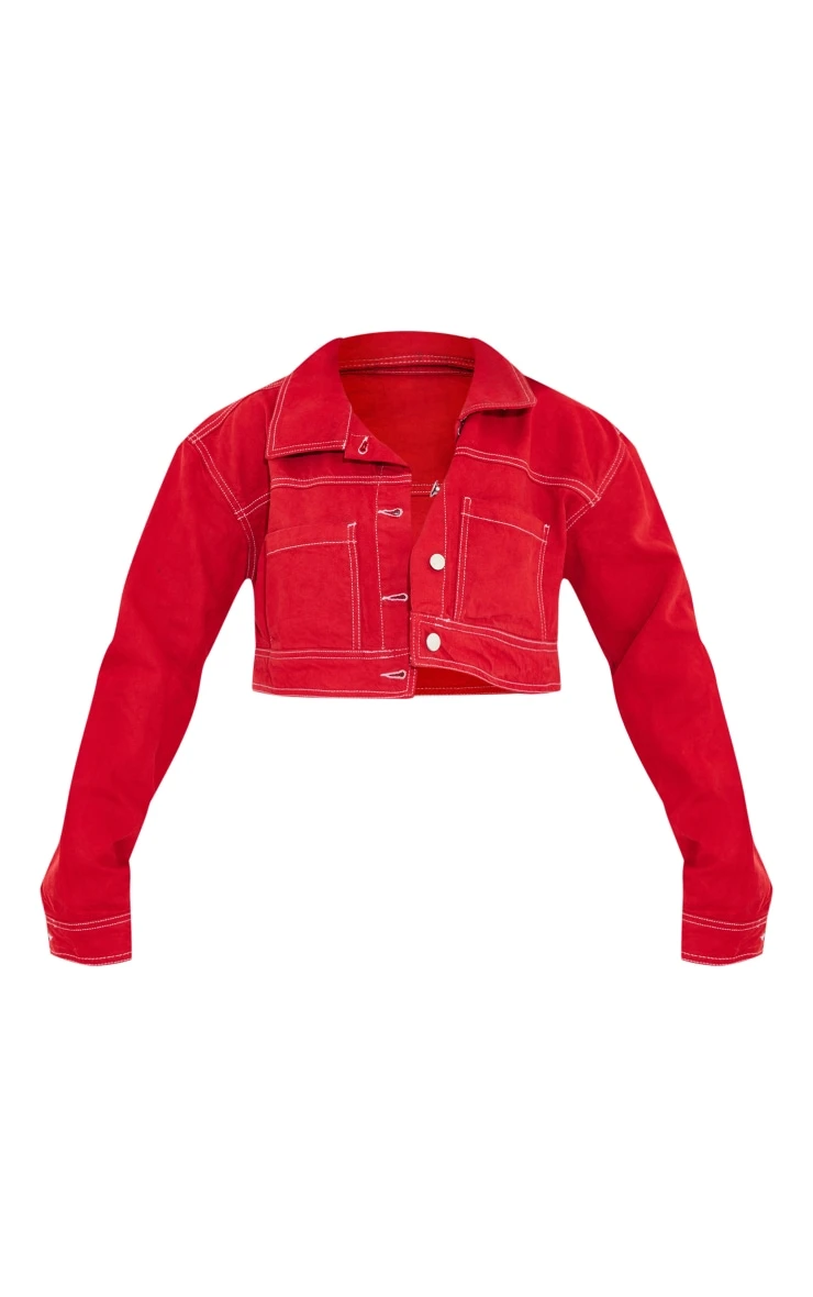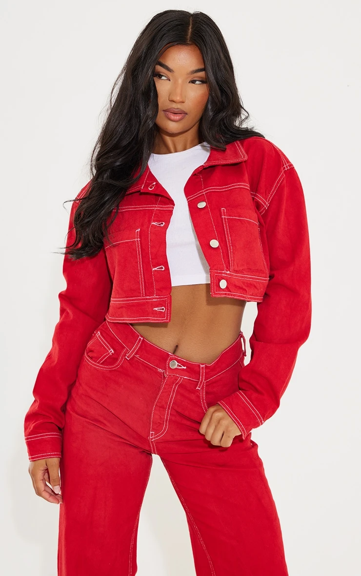 Be the first to review “Prettylittlething Red With Contrast Stitch Crop Denim Jacket Red” Cancel reply