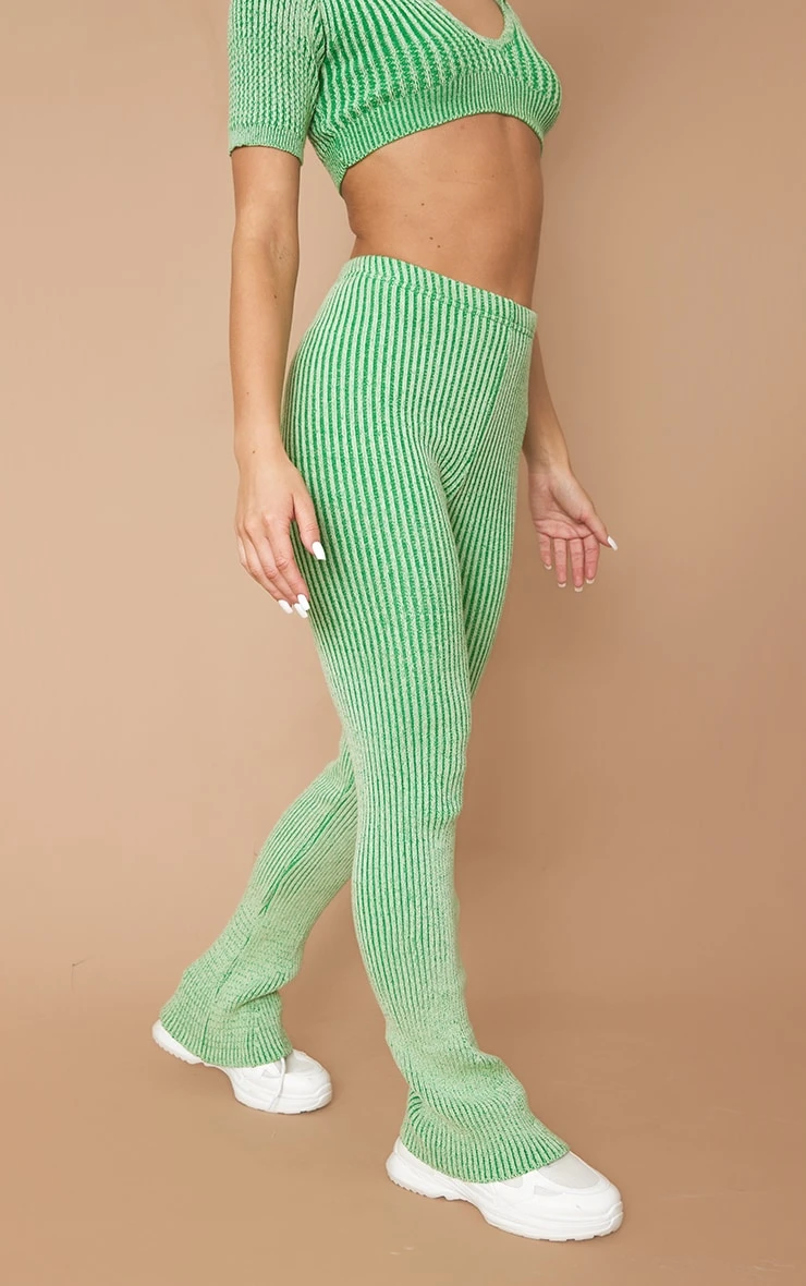 Elevate your outfit of the day with these bottoms. Featuring a sage knit material with a two tone design and a wide leg fit. Team with the matching top, a trench coat and fresh kicks for a combo we’re crushing on.