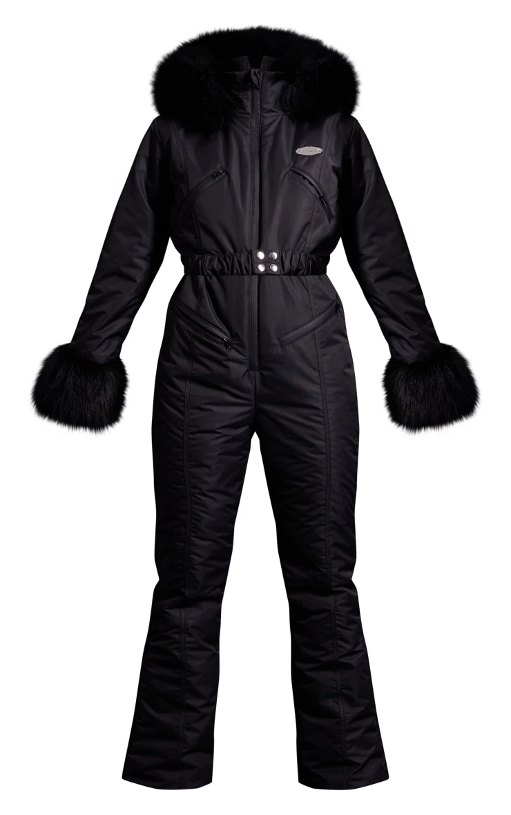 Take on the slopes in style with this unreal PrettyLittleThing ski black tipped faux fur trim belted snow suit. It is brought to you in a black material with faux fur trim detailing and a belt detail that will flatter your unreal figure, what more could you want? Team this snow suit with your fave boots and cosy accessories to elevate the look further.