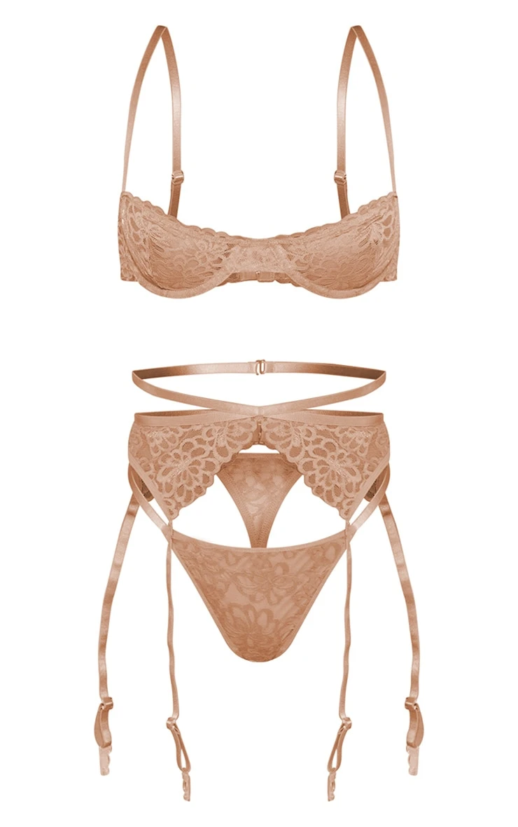 Be the first to review “Prettylittlething Tan Floral Scalloped Edge Lace 3X Piece Lingerie Set Tan” Cancel reply