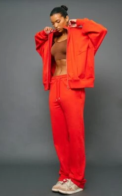 We’re all about bold hues this season and these tomato red premium tonal print straight leg sweatpants will have you standing out from the crowd. With a tomato red material, a straight leg design and a relaxed fit, everyone will be obsessing over these sweatpants. Simply pair them with the matching top and your fave accessories for a fool proof finish.