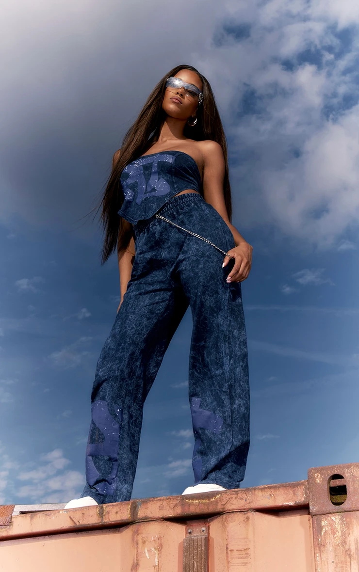 Hit refresh on your new season wardrobe with these PrettyLittleThing washed blue wide leg sweatpants, they’re perfect for those chilled, off-duty days. Made using a washed blue material with a wide leg design and a relaxed fit, what more could you want? Team these wide leg sweatpants with the matching top, box fresh sneakers and your fave accessories for a combo we’re crushing on.