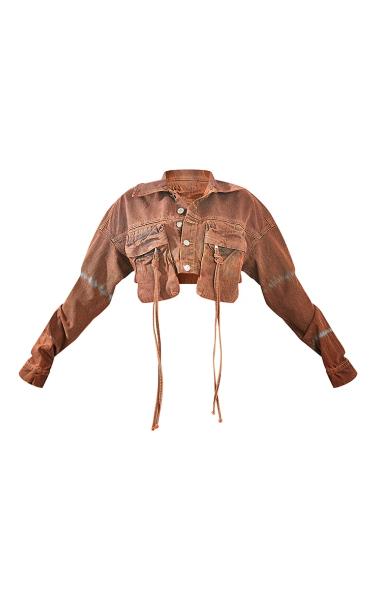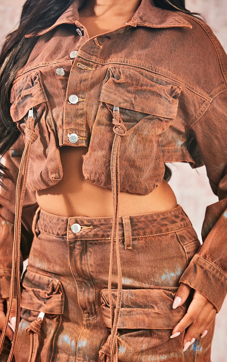 Bring all the drama into your weekend wardrobe with this washed orange cropped cargo denim jacket, you’re sure to have heads turning for all the right reasons. Brought to you in a washed orange denim material with a cropped length and a cargo style, this jacket just went straight to the top of your hit list. Style it with the matching skirt, knee high heeled boots and your fave accessories for a look that will get you noticed.