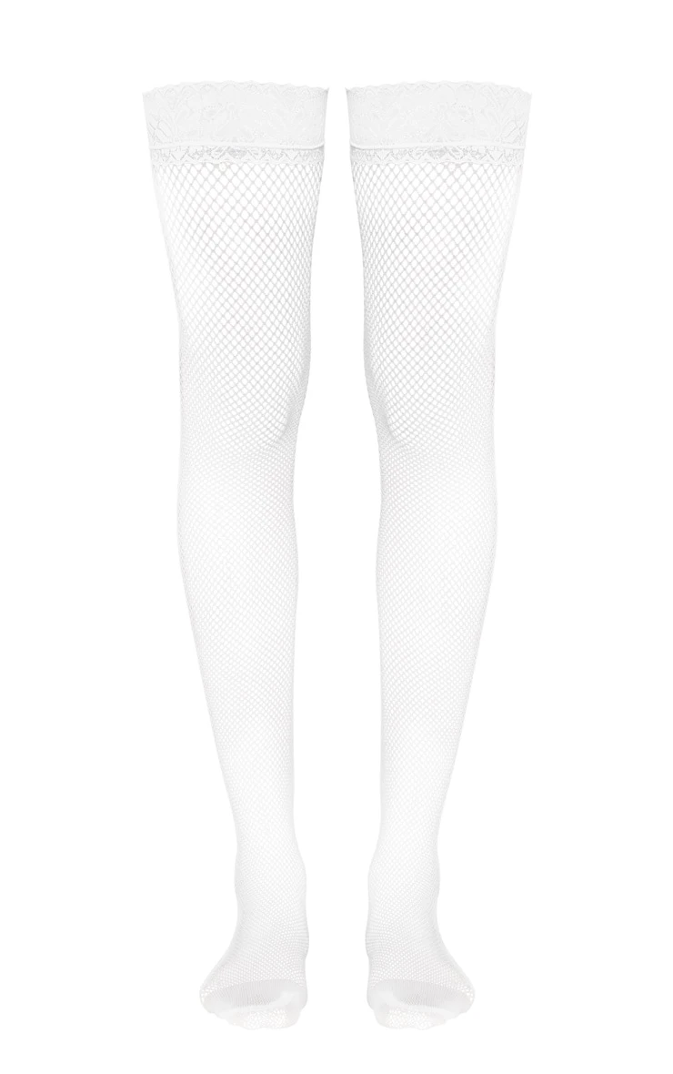 Finish off your lingerie look with these hold-ups. Featuring a white fishnet fabric with a lace top detail, style with a white lingerie set for a look you can wear with confidence.