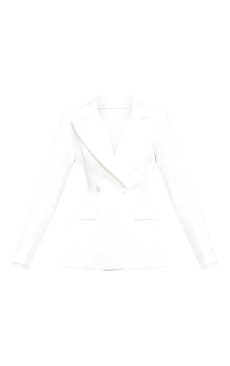 Be the first to review “Prettylittlething White Woven Pocket Detail Double Breasted Blazer White” Cancel reply