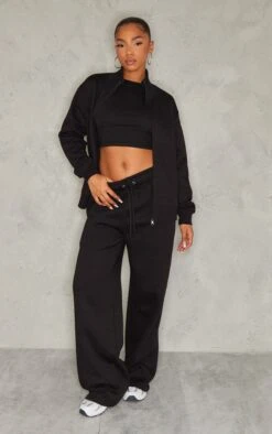 PRETTYLITTLETHING Black Logo High Waisted Cuffed Sweatpants Black