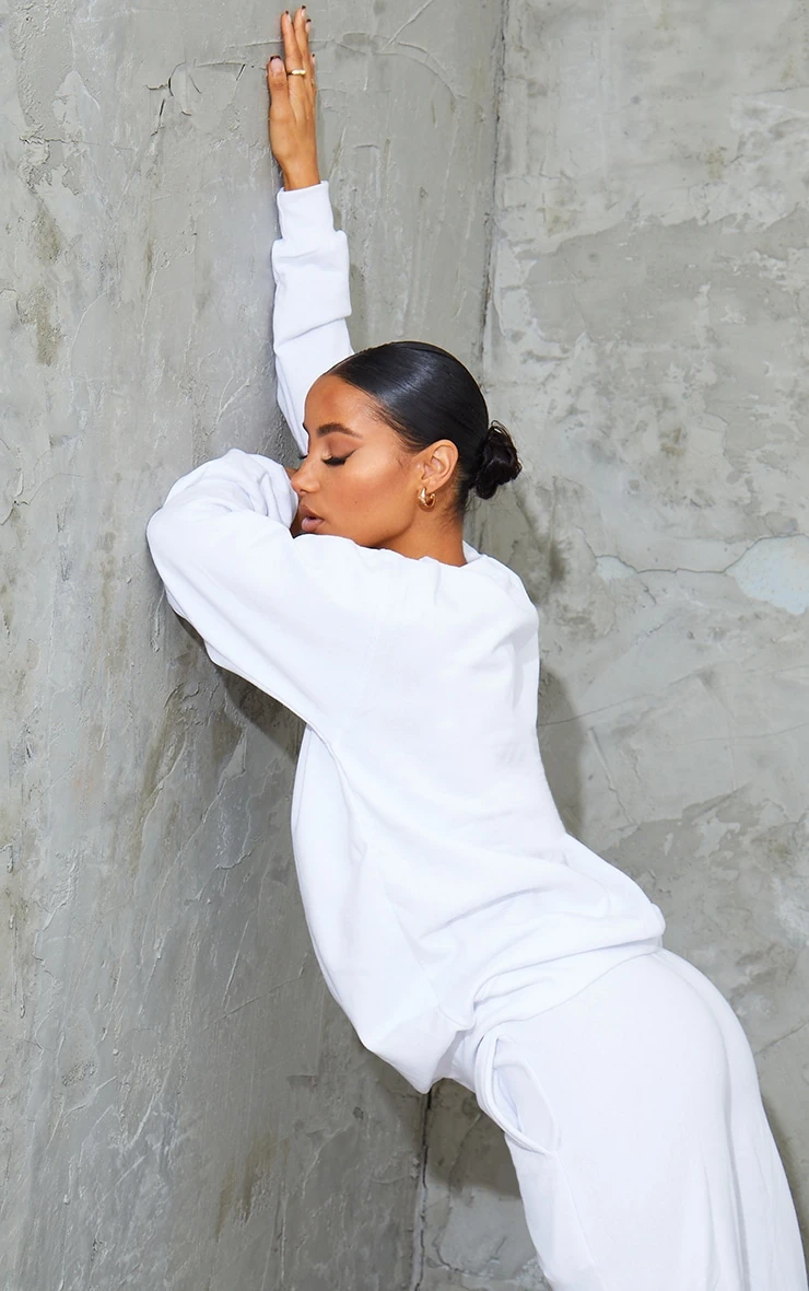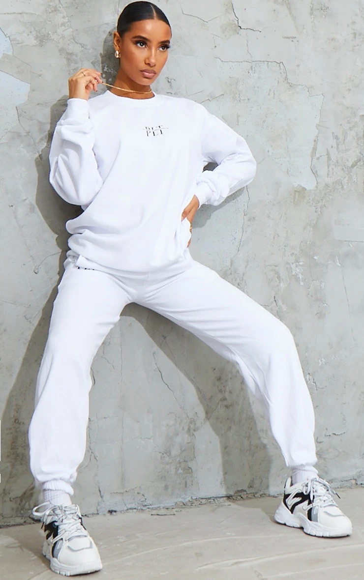 This sweatshirt is perfect for those off-duty days. Featuring a white material with a ‘PLT’ graphic on the front and a loose, comfy fit. Team this with the matching comfy bottoms and chunky kicks for a look we’re obsessing over.